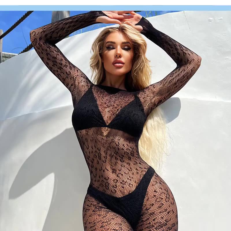 This black lace bodysuit skillfully combines sexiness and delicacy. Made of delicate lace fabric, the unique pattern design is all over the body, which not only adds a mysterious and romantic atmosphere but also can faintly outline the body curves, fully showing charming charm. The overall tailoring fits the figure, which can well show the advantages of the figure, and the long – sleeve design injects a touch of elegance and retro feeling into the look. Whether for creating a private romantic moment or making an eye – catching look on special occasions, it can make you exude unique feminine charm and become the center of attention.