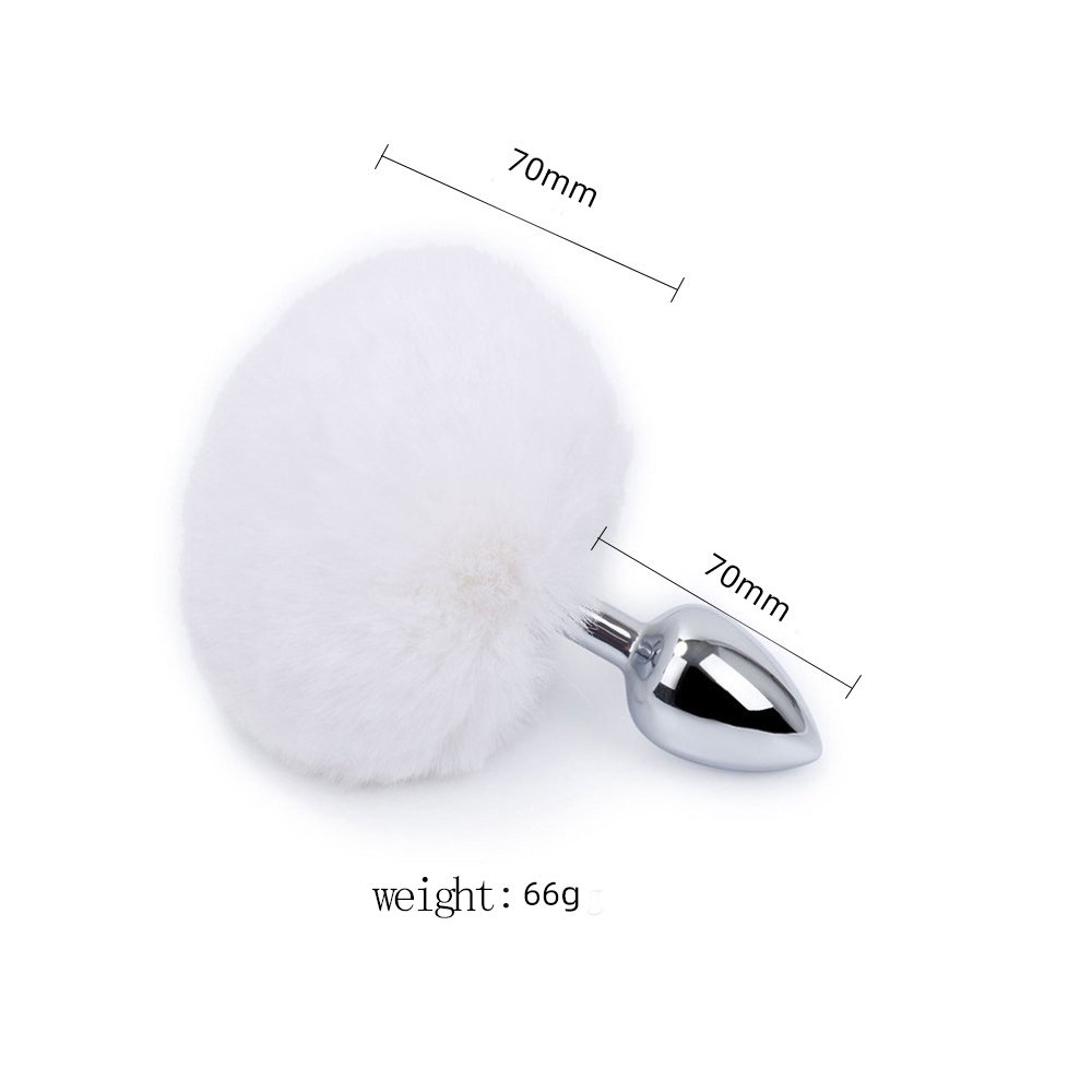This product is a brand-new metal pom-pom anal plug. The plug itself is silver, and at the back, it features a non-detachable short tail pom-pom. There are nine colors to choose from for the pom-pom: white, gray, red, brown, rose red, pink, black, light purple, and dark purple. This anal plug is compact and very suitable for beginners, and for sissies, it is extremely cute. When inserting this plug, you can imagine yourself as an adorable little bunny, since most bunny tails are round. Paired with a cute Fufu Clip, it will make your partner feel that there is no one in the world as cute as you, enhancing your bond.