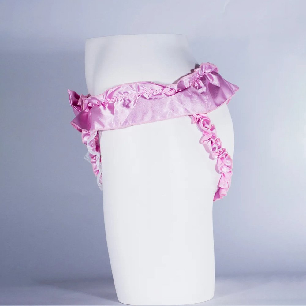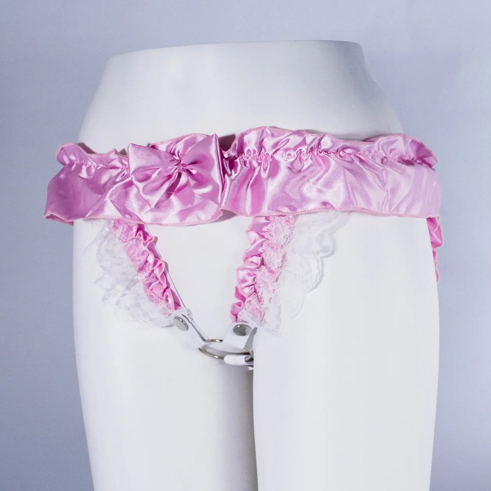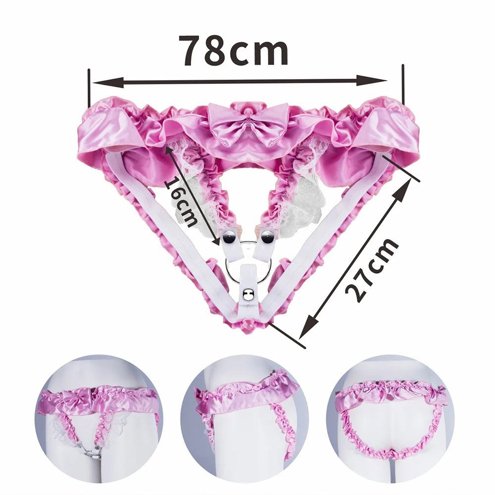 Enhance your discipline routine with this Sissy-style 3-Way Adjustable Support Belt. Designed specifically to complement your FUFU Clip, this auxiliary strap ensures a secure and comfortable fit for all-day wear. The exterior features a charming, feminine design with soft pink satin fabric and delicate white lace trim, accented by an elegant bow that perfectly captures the sissy aesthetic. Its unique 3-way tension system allows for fully adjustable, multi-angle support, providing the stability you need to keep your device perfectly positioned throughout your BDSM training. Whether you are looking for extra security or added style, this versatile and breathable support belt is the ultimate accessory for dedicated play.